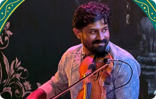 At Natyabharati Academy, our Violin Guru Vishnu R Varma brings dedication and expertise, nurturing students to achieve proficiency and artistry in Carnatic Violin.